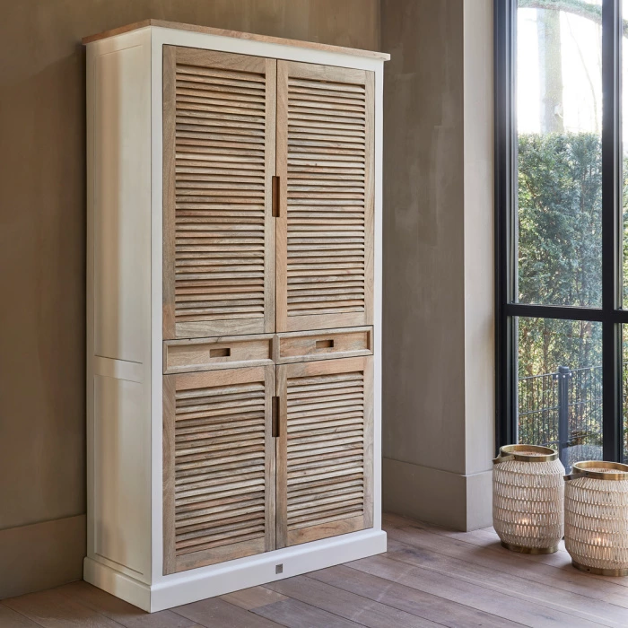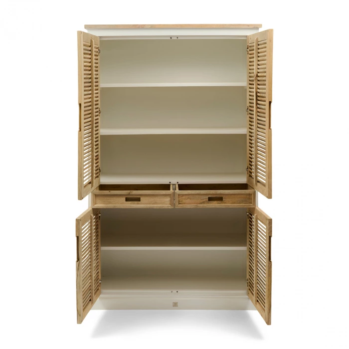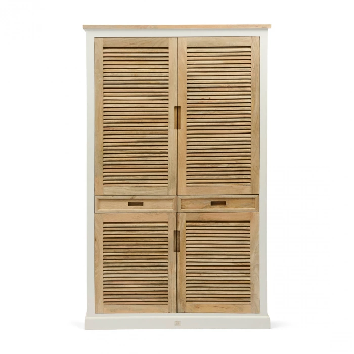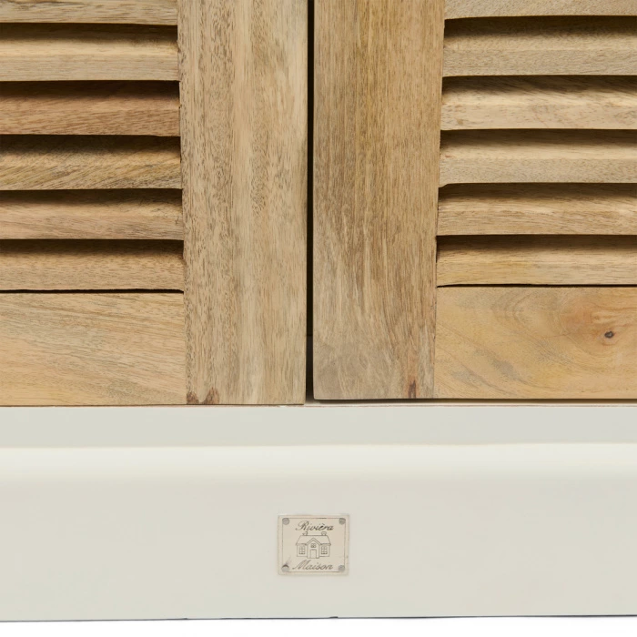 Bringe rustikalen Charme in deine Einrichtung mit dem Baton Rouge Sideboard. Mit einer Kombination aus Weiß und hellen Holztönen strahlt dieser schöne Schrank rustikale Eleganz aus. Die Rollladentüren verleihen dem Design einen raffinierten und zeitlosen Look, während der geräumige Stauraum perfekt für Geschirr, Gläser oder andere wichtige Dinge ist. Mit seinen großzügigen Abmessungen ist dieser Schrank eine praktische und zugleich stilvolle Ergänzung für dein Esszimmer, deine Küche oder dein Wohnzimmer. Mit einem weichen Tuch ist er leicht zu pflegen. Lass dein Zuhause mit diesem attraktiven Sideboard erstrahlen.