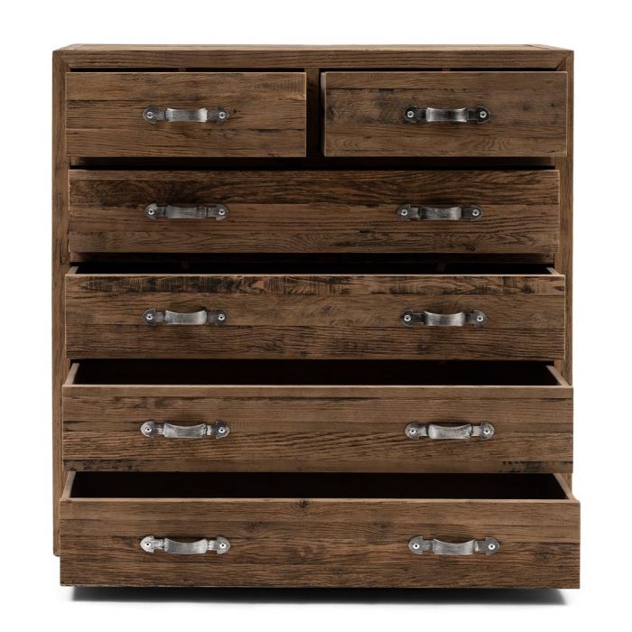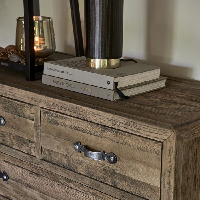 Mit den Worten markant und robust lässt sich die Kommode Connaught XL am besten beschreiben. Diese große Kommode ist nämlich aus altem Eichenholz gefertigt. Die spezielle Verarbeitung der Möbel in den Ateliers von Rivièra Maison unterstreicht die patinierte Optik des Holzes. Hinzu kommen noch die Griffe aus gebürstetem Edelstahl, et voilá, ein Blickfang für jeden Raum.