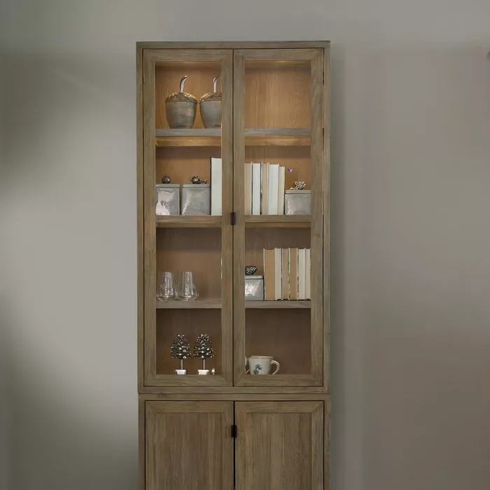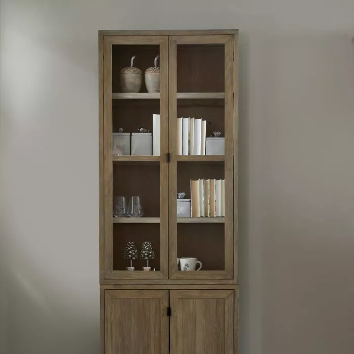 Das Del Rey Buffet Cabinet von Rivièra Maison aus der modularen Schrankserie Del Rey, die Sie nach Belieben zusammenstellen können. Mit den Maßen 80x42x145 cm bietet dieses Sideboard mit Glas in den Türen, das immer als Aufsatz auf der Kommode oder auf der Kommode dienen kann, viel Stauraum und ist aus recyceltem Eichenholz gefertigt. Stellen Sie sich vor, wie die natürlichen Holztöne Ihren Raum bereichern und Ihren persönlichen Gegenständen einen Platz zum Strahlen geben!