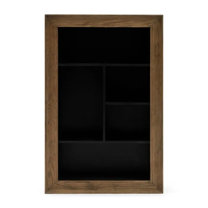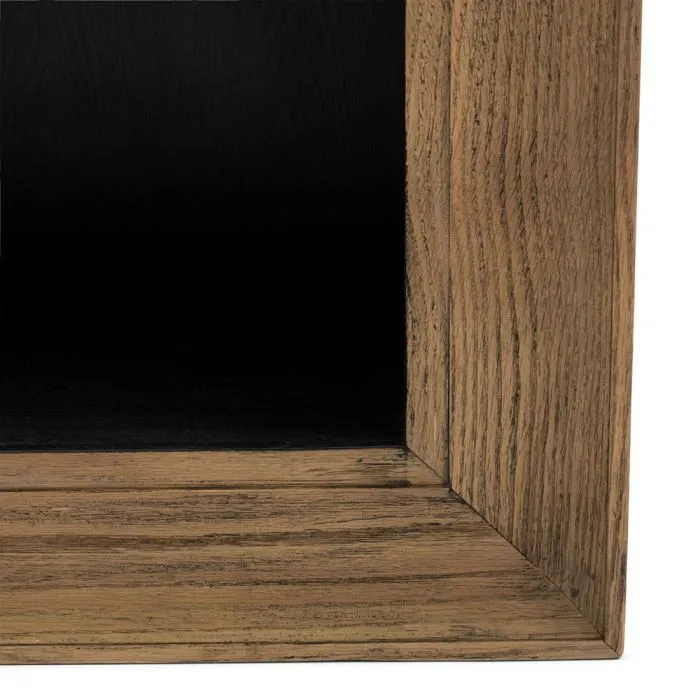 Dies ist das kleine Bücherregal aus der Serie Evissa. Eine Möbelserie, die sich durch ihre schwebenden Möbelstücke auszeichnet, wie dieses kleine Bücherregal mit Rahmen. Das ganze Ding ist aus aufgearbeiteter Eiche gefertigt. Der Innenraum hat eine feste Aufteilung mit versetzten Einlegeböden, so dass Sie sowohl Bücher als auch anderes Zubehör darin unterbringen können.