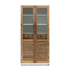 Das Sideboard Lake ist eine elegante Ergänzung für dein Interieur. Die Holztüren verleihen ihm einen warmen Touch. Die Türen sind mit Lamellen und Glas versehen, was für einen raffinierten und luftigen Look sorgt. Die goldenen Griffe setzen einen auffälligen Akzent, während der Magnetverschluss für einen nahtlosen und praktischen Abschluss sorgt. Mit seinen zwei Schubladen bietet dieser Schrank außerdem praktischen Stauraum und ist damit sowohl funktional als auch stilvoll. Durch die Verwendung von aufgearbeiteter Eiche ist jeder Schrank ein Unikat.