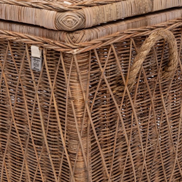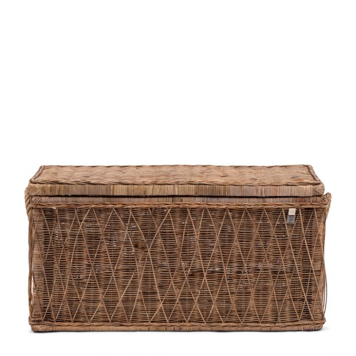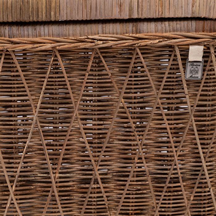 Da das Rattan in den Nusa Dua-Kisten von Hand geflochten wird, gleicht keiner dieser Aufbewahrungskörbe dem anderen. Auf der Außenseite ist ein diagonales Muster aus Slimit-Rattan geflochten, das der Kiste, die übrigens auch als Couchtisch verwendet werden kann, einen dreidimensionalen Effekt verleiht. Die Nusa Dua-Kiste ist in zwei verschiedenen Formaten erhältlich.