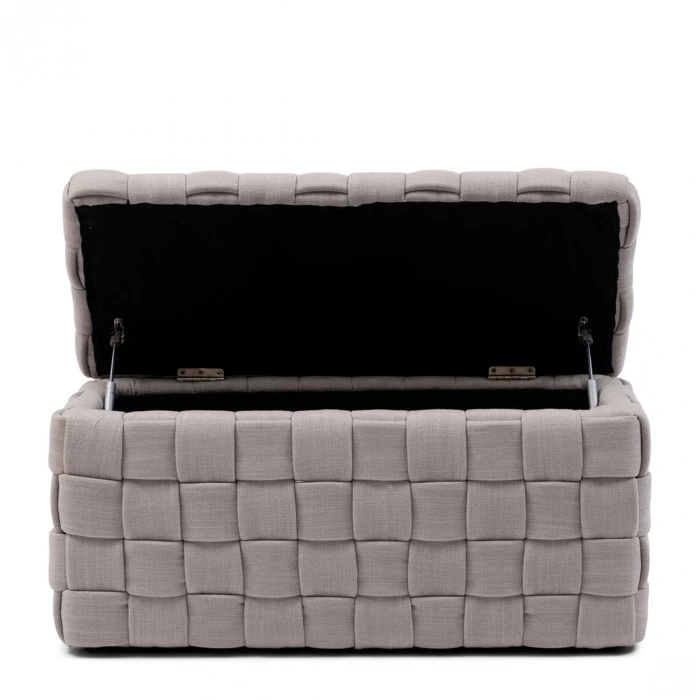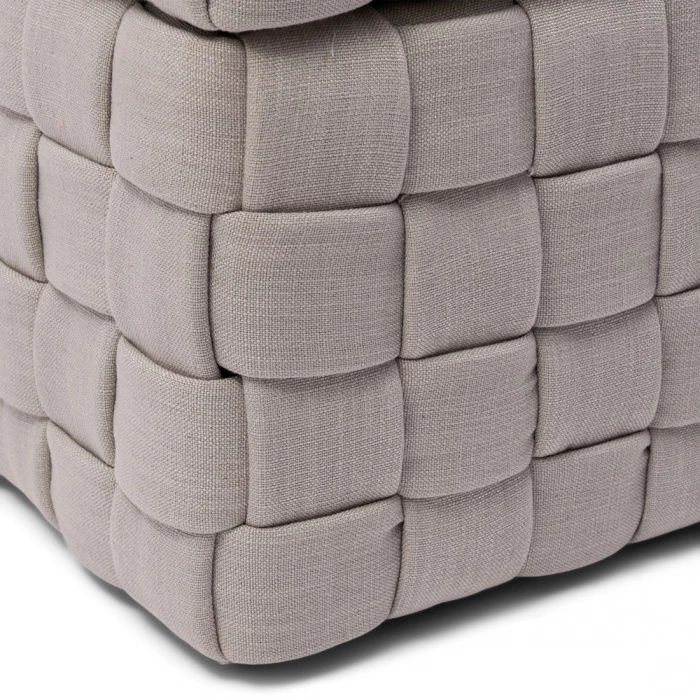 Die Serie der Room 48-Bänkchen wurde um eine aufklappbarer Hocker erweitert. Ideal für die Aufbewahrung von Gegenständen oder für die Bettwäsche im Schlafzimmer. Mit schön geflochtenem Pellini-Leder rundum, was dem Hocker ein luxuriöses Aussehen verleiht. Mit seiner Höhe von 45 cm ist er auch ein bequemer Fußhocker.