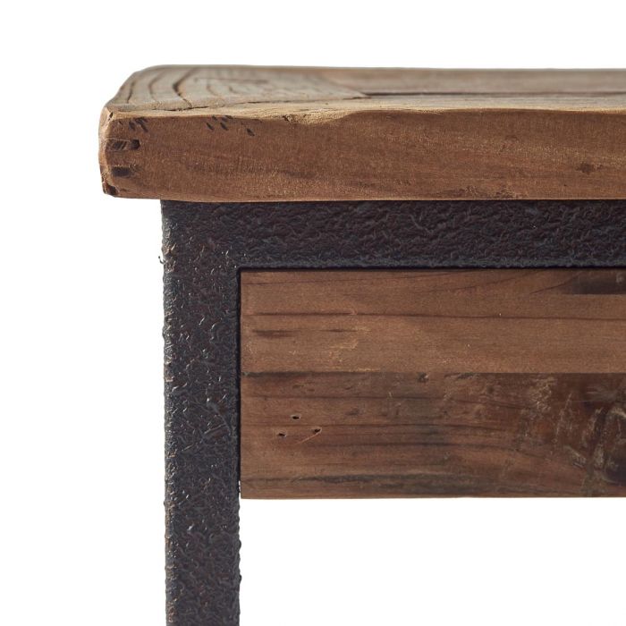 Dieses Nachtschränkchen aus hochwertigem, recyceltem Holz und einem Untergestell aus Eisen verfügt über eine stabile Schublade. Der Mix aus altem Holz und Eisen sorgt für eine charakteristische Loft-Atmosphäre, die Ihrem Schlafzimmer entspannten Wohnkomfort verleiht. Das Möbelstück wurde sorgfältig konzeptioniert, wodurch es eine subtil-raffinierte Ausstrahlung mit Elementen des zeitgemäßen Industrie-Stils aufweist.
