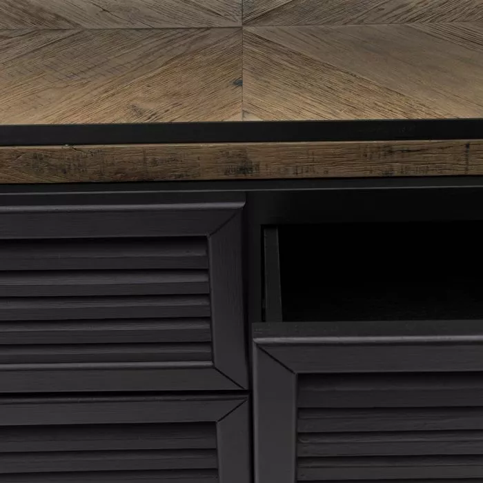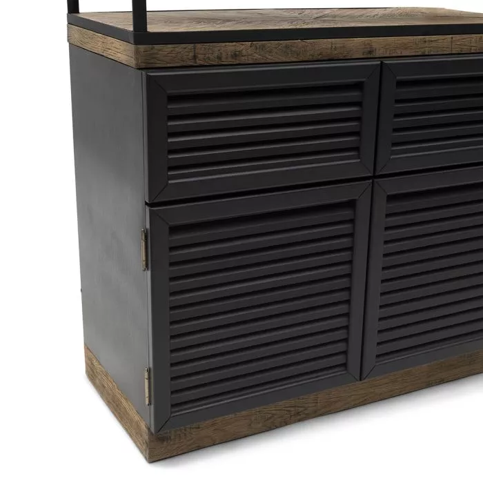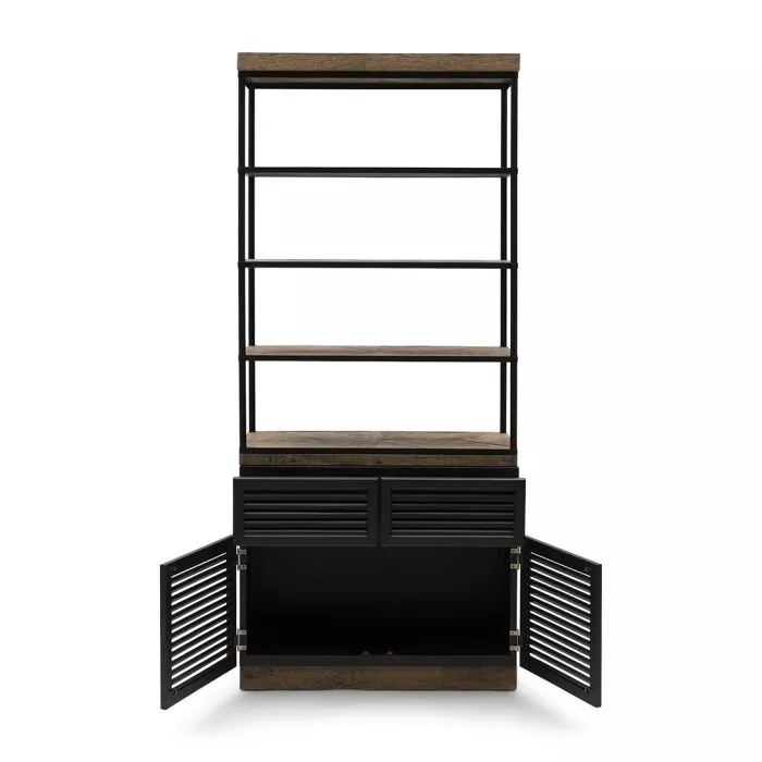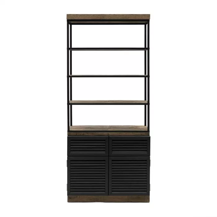 Der Bücherschrank Stanford ist so stattlich wie sein Name! Dieser Schrank strahlt Charakter und Stil aus. Er ist aus aufgearbeiteter Eiche und Pappelholz gefertigt und mit einem eleganten Eisenakzent versehen. Die Rollladentüren verleihen diesem schönen, 100x47x226 cm großen Bücherregal ein verspieltes Element. Der Deckel, die Platte und der Sockel sind in verwitterter Eiche ausgeführt, was diesem Bücherregal ein warmes und authentisches Aussehen verleiht. Ein zeitloses und schönes Möbelstück.