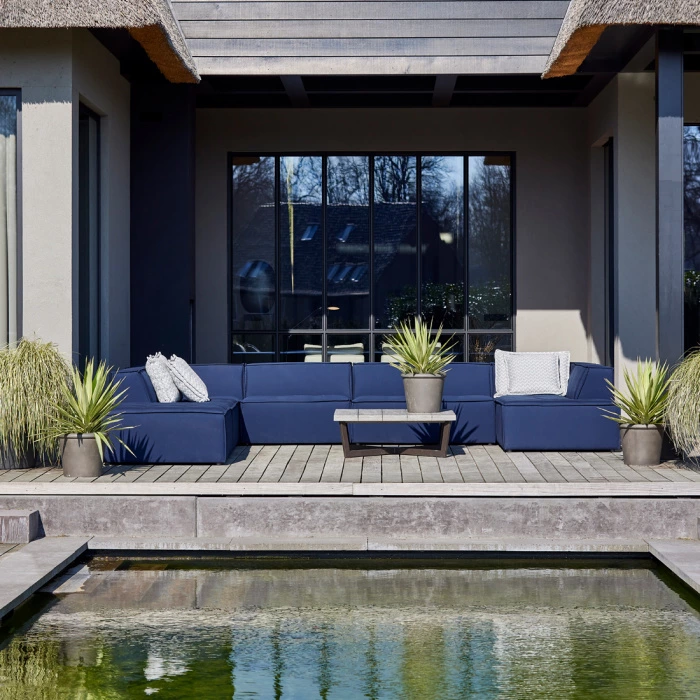 Auf dieser aparten Outdoor-Chaiselongue lässt sich der Sommer in vollen Zügen genießen. Sie lässt sich auf der linken Seite Ihres Lounge-Sets einfügen oder auch als Einzelmöbel platzieren. Der Sessel ist aus wetterbeständigem Material gefertigt, sodass ihm auch ein Regenschauer nichts anhaben kann. Die robusten, rundumlaufenden Nähte garantieren Ihnen jahrelanges Sommervergnügen und Komfort. Die Chaiselongue ist in vier Farben erhältlich - Squamarina, Loch (Dunkelblau), Oak (Schlammfarben), Padouk (Rostrot).