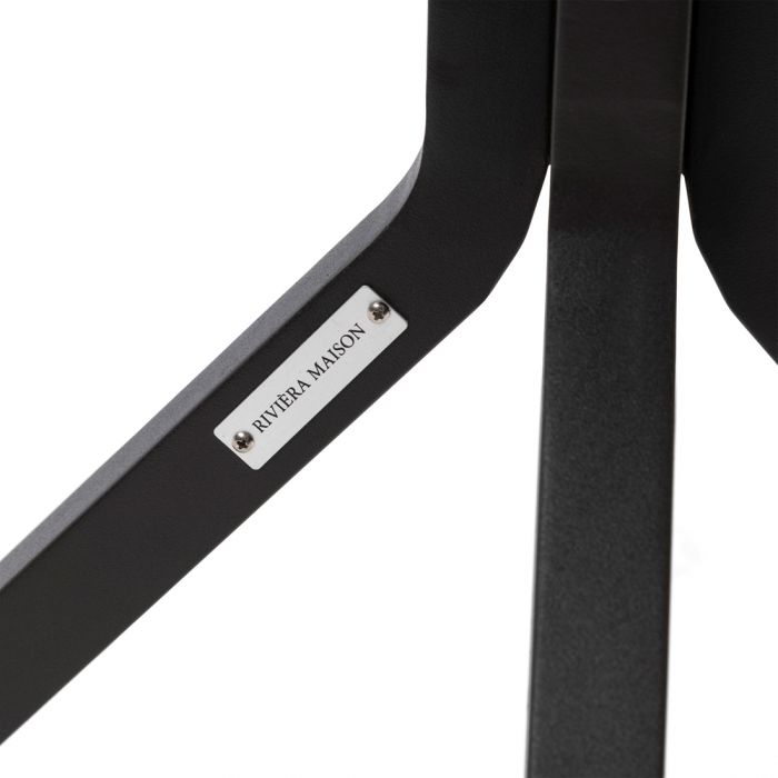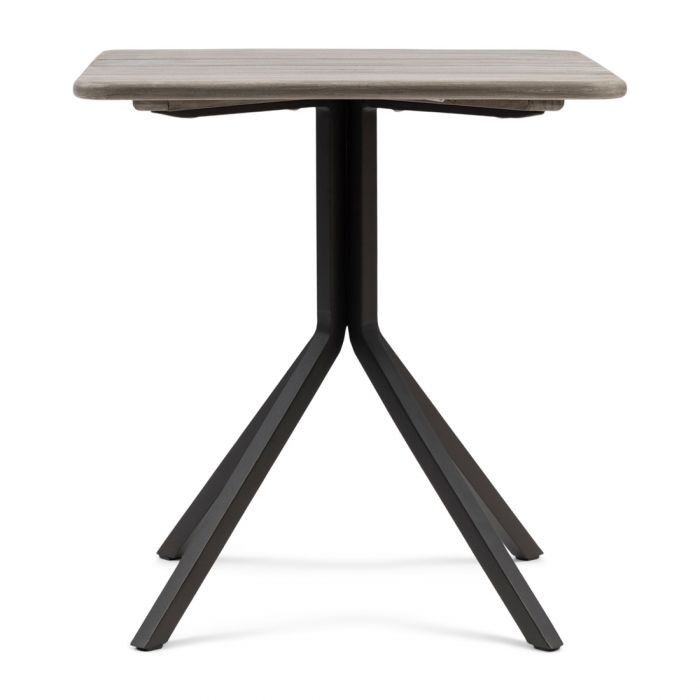 An diesem Bistrotisch können Sie herrlich drinnen und draußen essen oder Ihren Kaffee oder Ihr Sommergetränk genießen. Das vierbeinige schwarze Aluminium erstreckt sich von der Mitte aus zu den vier Ecken. Das Paneel-Tischblatt ist aus Teakholz gefertigt. Der Tisch hat ein industrielles Aussehen.