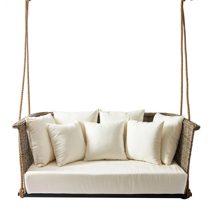 Wer Glück hat, kann die herrlichen Sommertage wunderbar im Freien verbringen. Machen Sie es sich auf der hängenden Sitzbank mit einem guten Buch und einem gesunden Drink oder einem Smoothie gemütlich und lassen Sie den lieben Gott einen guten Mann sein. Die Sitzbank ist aus Rattan Kubu gefertigt, einem herrlichen Material, das auch einen leichten Regenschauer schadlos überstehen kann. Sie ist 1,97 Meter breit, sodass Sie auch zu zweit bequem darauf sitzen können. Beachten Sie, dass das Maximalgewicht von 200 Kilo nicht überschritten werden darf.