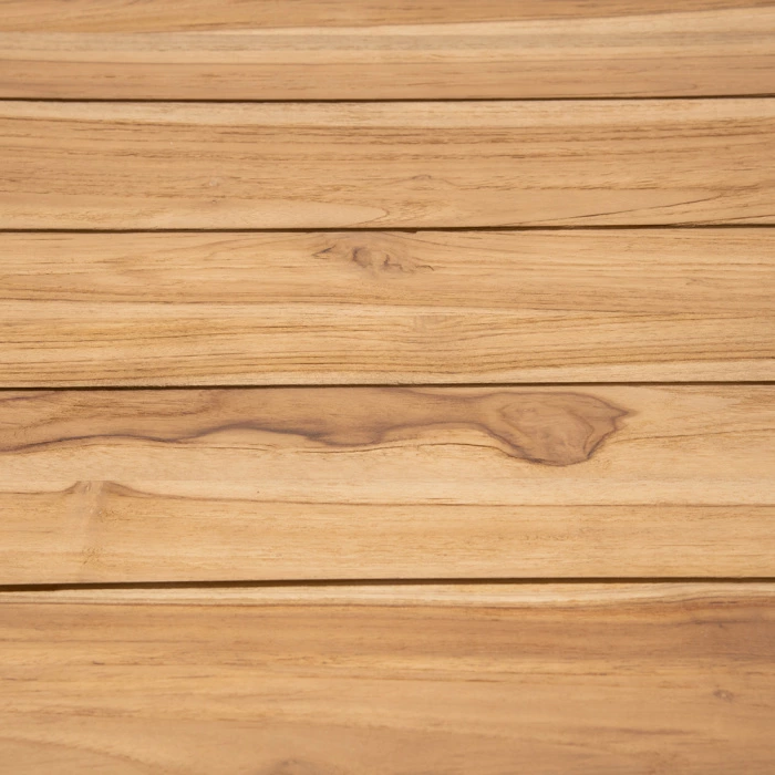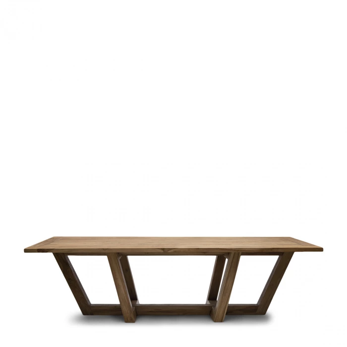 Dieser großzügig konzipierte Tisch bietet ausreichend Platz für gesellige Sommerabende und ausgedehntes Tafeln mit Freunden und Familie. Die Tischplatte besteht ebenso wie die Tischbeine aus robustem Teakholz. Diese werden durch einen langen Balken mit daran anschließenden Seitenbeinen verstärkt. Dadurch ist der Tisch äußerst stabil. Dieser Esstisch ist in zwei Größen erhältlich.