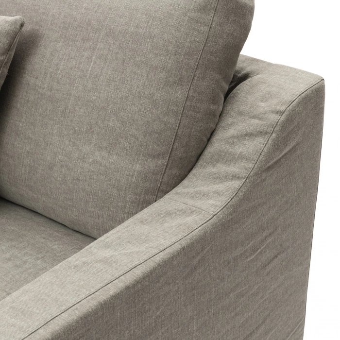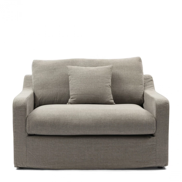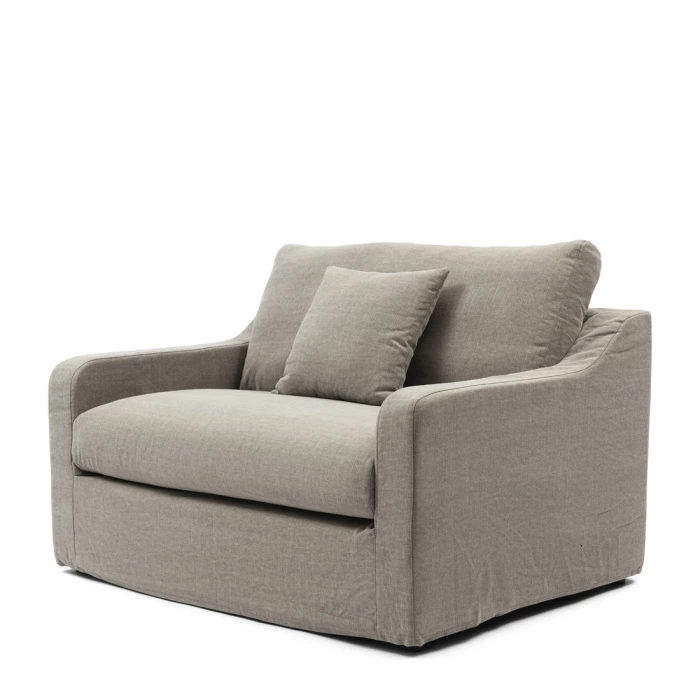 Der Loveseat Giovanni in der eleganten Farbe Stone strahlt zeitlose Schönheit aus. Gefertigt aus sorgfältig ausgewähltem Washed Cotton und gestützt von robusten Buchenbeinen, bietet dieser Sessel sowohl Komfort als auch Langlebigkeit. Das schlichte Design wird durch die gepolsterte Rückenlehne unterstrichen, die nahtlos in die Armlehnen übergeht.
