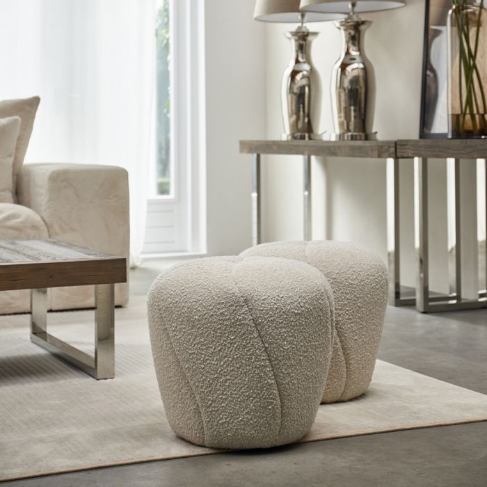 Der Perruche Hocker in schlichtem Weiß strahlt pure Eleganz aus. Die eleganten Nähte, die in einem sanften Wirbel zur Mitte hin verlaufen, verleihen dem Hocker ein einzigartiges Design. Der luxuriöse Beluche-Boucle-Stoff fühlt sich einladend an und schafft eine warme Atmosphäre. Mit einer Höhe von 47 cm und einem Durchmesser von 50 cm ist dieser vielseitige Hocker ideal als zusätzliche Sitzgelegenheit oder schicker Beistelltisch. Egal, ob du ihn im Wohnzimmer, im Schlafzimmer oder im Flur aufstellst, der Perruche Pouf verleiht deiner Einrichtung sofort einen wohnlichen Charme. Ein stilvolles Möbelstück, das Komfort und Schönheit nahtlos miteinander verbindet.