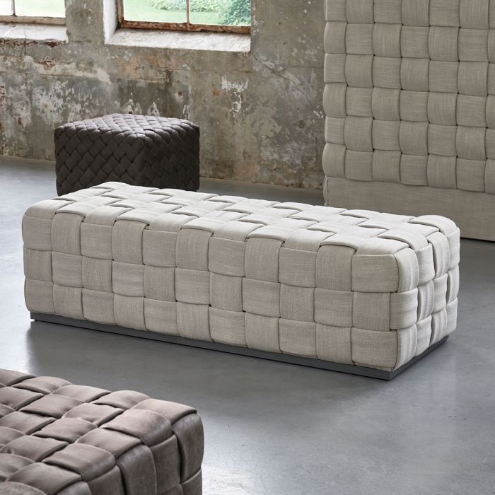 Wie wäre es mit einem länglichen Fußhocker von 160 cm? Dafür lässt sich sicher ein schöner Platz finden. Die Fußbank ist mit Leinen in der Farbe Fabulous Flax gepolstert. Der Stoff wird von Hand gewebt, so dass Sie ein besonders schönes Ergebnis erhalten.