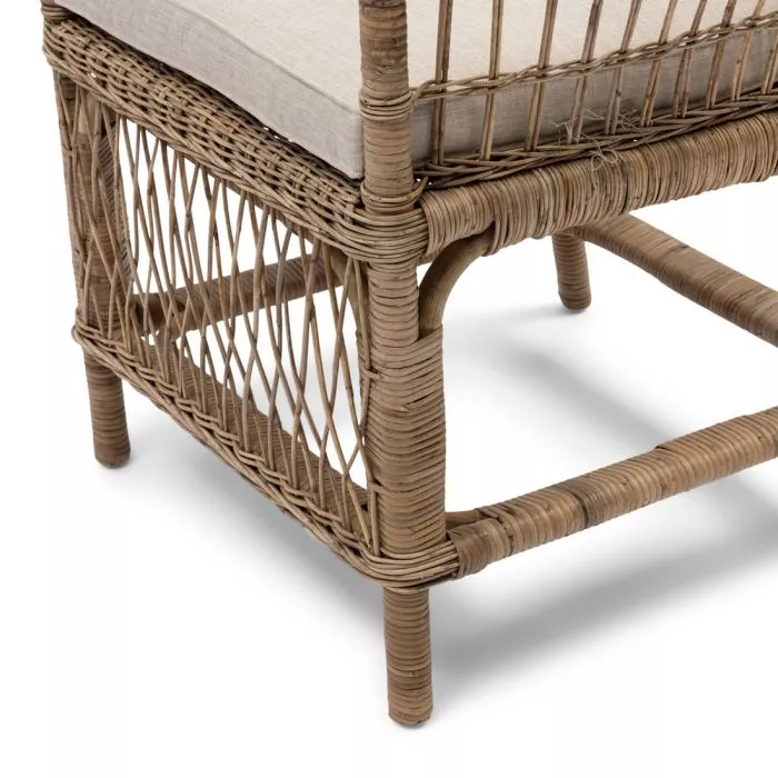 Der Victoria Falls Dining Armchair ist ein luxuriöser Esszimmerstuhl aus Rattan. Der Rattanstuhl wird in Indonesien komplett von Hand gefertigt und geflochten. Der Stuhl hat Armlehnen, die in die Rückenlehne übergehen. Dieser bequeme Esszimmerstuhl wird mit einem hellen Baumwollkissen geliefert.