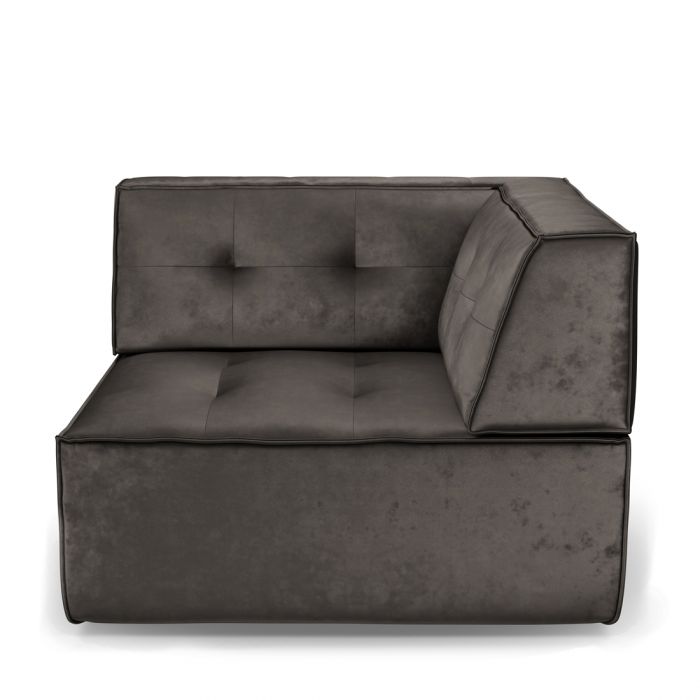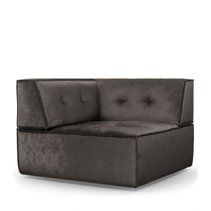 Dies ist das Eckelement aus der modularen Sofaserie Brandon. Die separaten Elemente, aus denen Sie sich Ihr Lieblingssofa zusammenstellen können, sind alle sehr großzügig und haben eine feste, bequeme Sitzfläche. Die Sofas sind mit Tufting-Nähten in der Rückenlehne verziert, was an eine Kapiton-Polsterung erinnert, jedoch ohne den Knoten. Erhältlich in verschiedenen Farben und Stoffen.