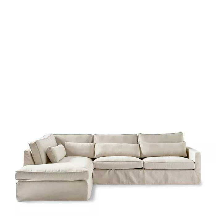 Ein wunderbares Ecksofa zum Eintauchen und Entspannen. Jeder will so eine Bank zu Hause haben. Die Brompton Cross Corner mit der linken Ecke erfüllt mehr als diese Anforderung. Es ist aus Buchenholz und Polyester gefertigt, robust aber nicht schwer. Seine Größe ist 295 x 220 x 85 cm, groß genug, um mit ein paar Leuten bequem zu sitzen. Flecken vorsichtig manuell entfernen.