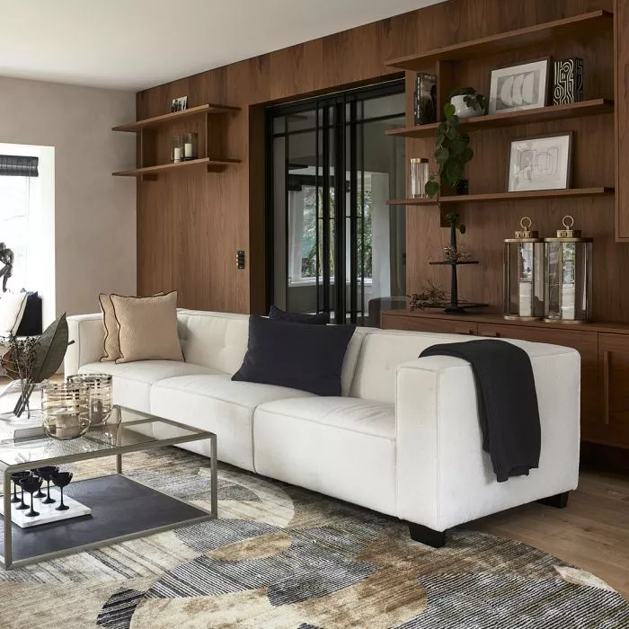 Dies ist das Hampton Heights Sofa in der XL-Version. Das sehr große Sofa ist, genau wie der „normale“ 3,5-Sitzer des Hampton Heights Sofas, schlicht gestaltet mit einer gepolsterten Rückenlehne, die ebenso hoch ist wie die Armlehnen. Auch die XL-Ausführung ist in verschiedenen Materialien und Farben erhältlich. Für noch mehr Komfort gibt es die passende Fußbank.