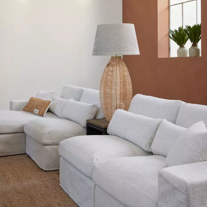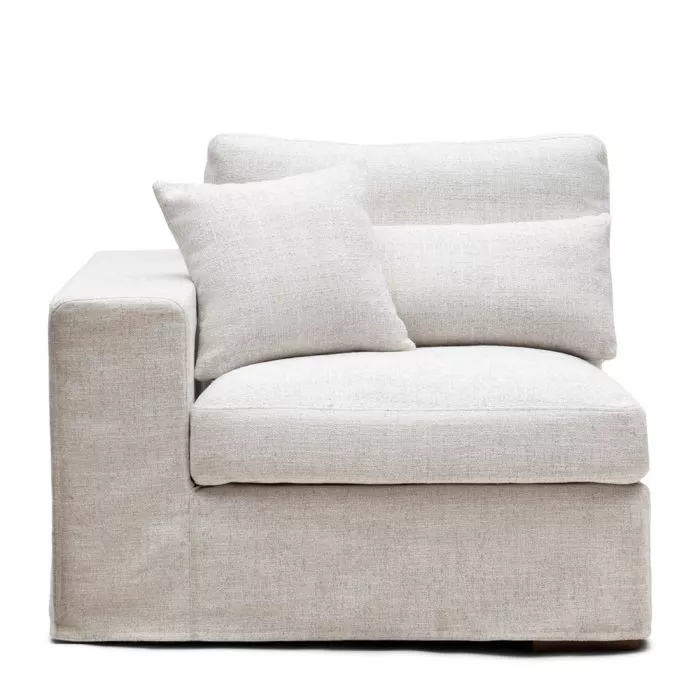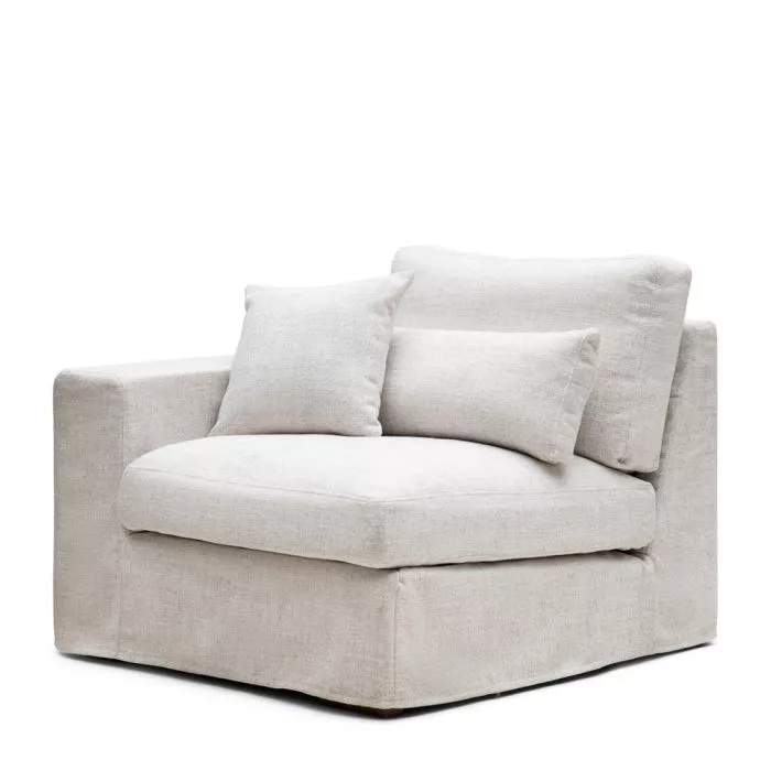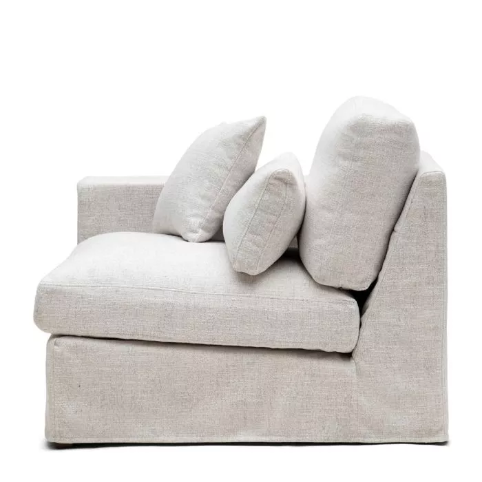 Dies ist der Armteil mit der Armlehne auf der linken Seite des Modulsofas Miles. Dieses Sofa besticht durch seinen schönen, locker fallenden Bezug, der fast bis zum Boden reicht. Das Modell ist etwas gerader und hat eine schöne, mitteltiefe Sitzfläche, die Sie durch die mitgelieferten losen Kissen einstellen können. Das Sofa ist in verschiedenen Teilen und Stoffen erhältlich.