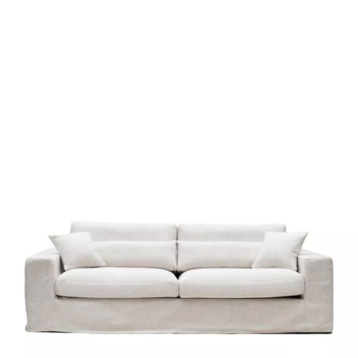 Das ist das 3,5-Sitzer-Sofa Miles: ein großzügiges, gerades Sofa mit modernem Landhausstil. Eine Besonderheit dieses Sofas ist sein abnehmbarer Bezug, der chemisch gereinigt werden kann. Das Gestell ist mit losen Rücken- und Sitzkissen bedeckt, wobei letztere mit Klettverschluss am Bezug befestigt sind. Erhältlich in verschiedenen Designs und Stoffen.