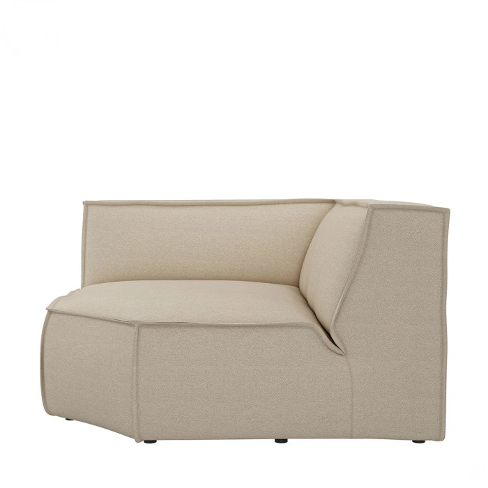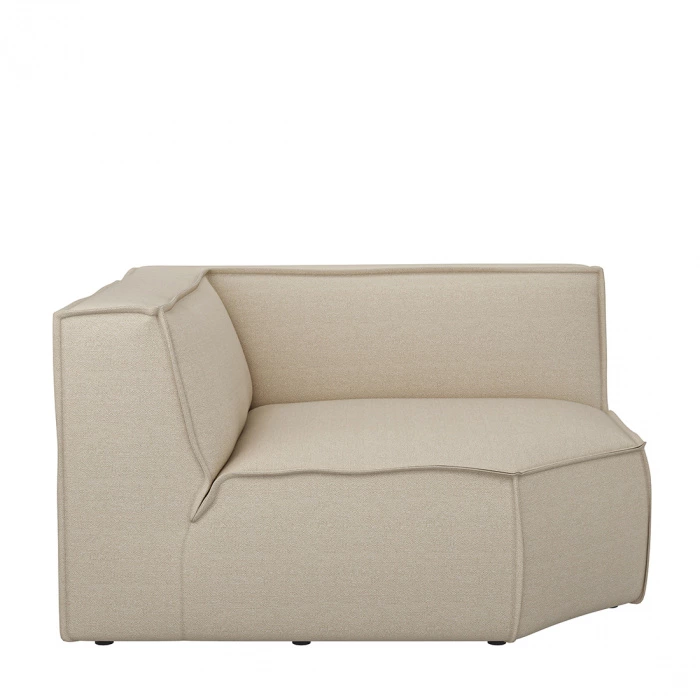 Ein stabiles Sofa aus einzelnen Elementen, so dass die Sitzgelegenheiten nach Belieben zusammengestellt werden können. Dieses Eckelement ist 131 cm breit; eine etwas schmalere Größe ist ebenfalls erhältlich. Die Sofaelemente sind aus einem Stück gefertigt und bestehen aus Buchenholz. Dadurch lassen sie sich bei Bedarf leicht verschieben. Die Velourspolsterung ist angenehm weich.