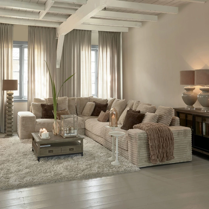 Sofa Vail ist ein komplettes Sofa, das aus mehreren Teilen besteht, die Sie auch einzeln verwenden können. Zum Beispiel können Sie zwischen den beiden mittleren Teilen eine separate Lounge oder einen Beistelltisch platzieren. So können Sie mit der Anordnung spielen. Dieses Sofa ist mit einer rechten oder linken Ecke erhältlich.