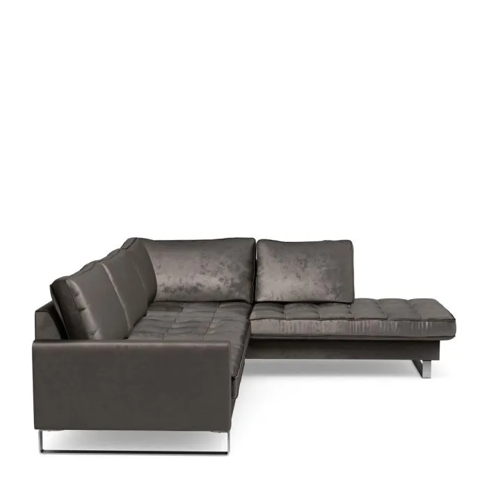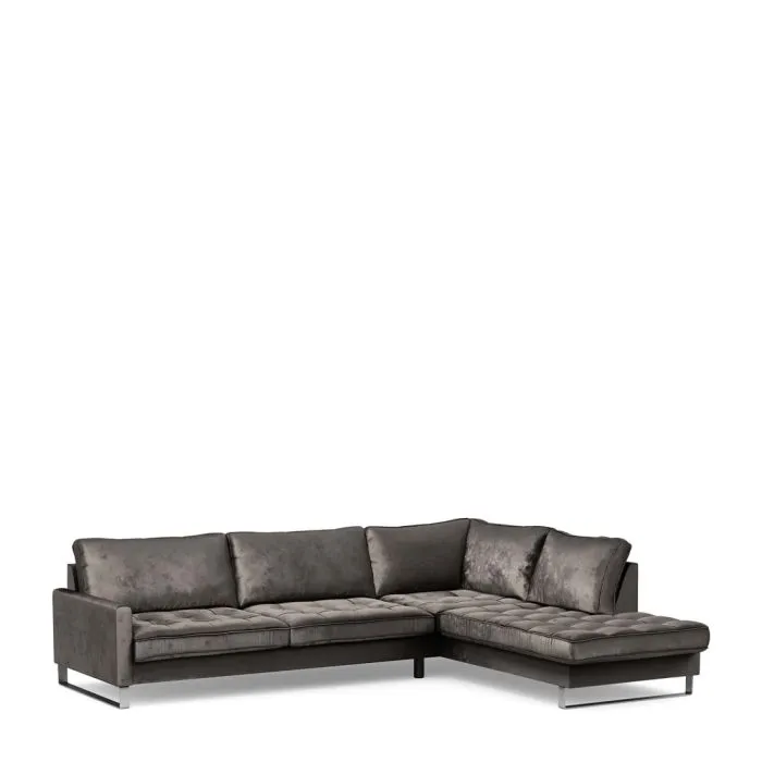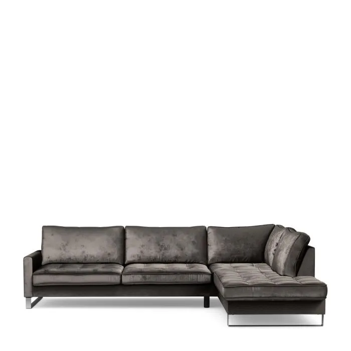 West Houston Ecksofa mit Chaise Longue rechts, velvet, Grimaldi Grey