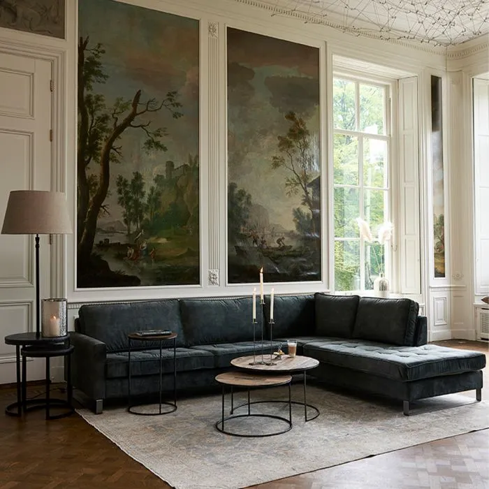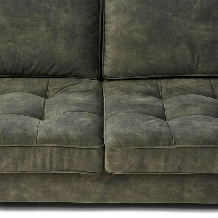 Dieses Sofa mit einer Chaiselongue auf der rechten Seite wird zum Liebling zu Hause. Nach einem Sportspiel oder einem langen Tag etwas schläfrig auf der Couch liegen. Auf den weichen Samt der Polster gespannt, ist dann eine Person voll erholt. Das Sofa besteht aus Buchenholz, Eisen und Polyester. Es hat ein robustes Aussehen, ist großartig und kommt in verschiedenen Materialien und Farben. 295 x 220 x 85 cm.
