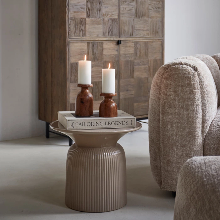 Bring Wärme und Stil in dein Wohnzimmer mit dem Cascais Beistelltisch in der Farbe Sand. Das schöne Design in Kombination mit der einzigartigen Oberfläche und der sanften Sandfarbe verleiht deiner Einrichtung einen raffinierten Touch. Dank seiner praktischen Größe ist dieser Tisch perfekt für dein Getränk oder dein Buch.