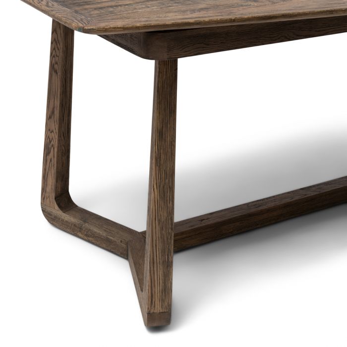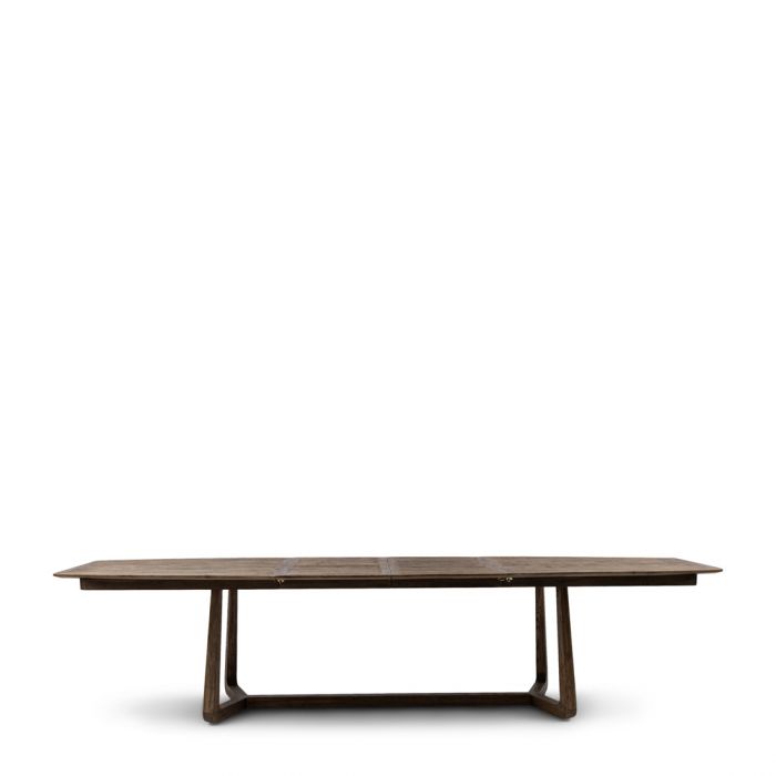 Dies ist der verlängerte, ausziehbare Miller-Esstisch, d.h. in der Mitte gibt es zwei Teile, mit denen Sie den Tisch verlängern können. Mit beiden Teilen dazwischen ist der Tisch über drei Meter lang. Ideal für ausgedehnte Abendessen mit Familie und Freunden. Der Tisch hat eine Platte aus recycelter Eiche und vier Beine, die auf dem Boden zu einem stabilen und geschmackvollen Rahmen zusammengefügt werden.