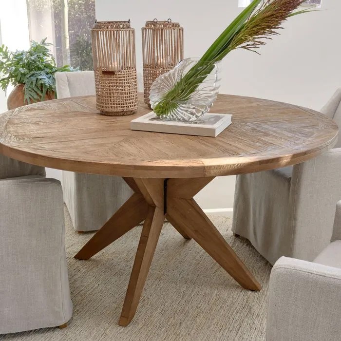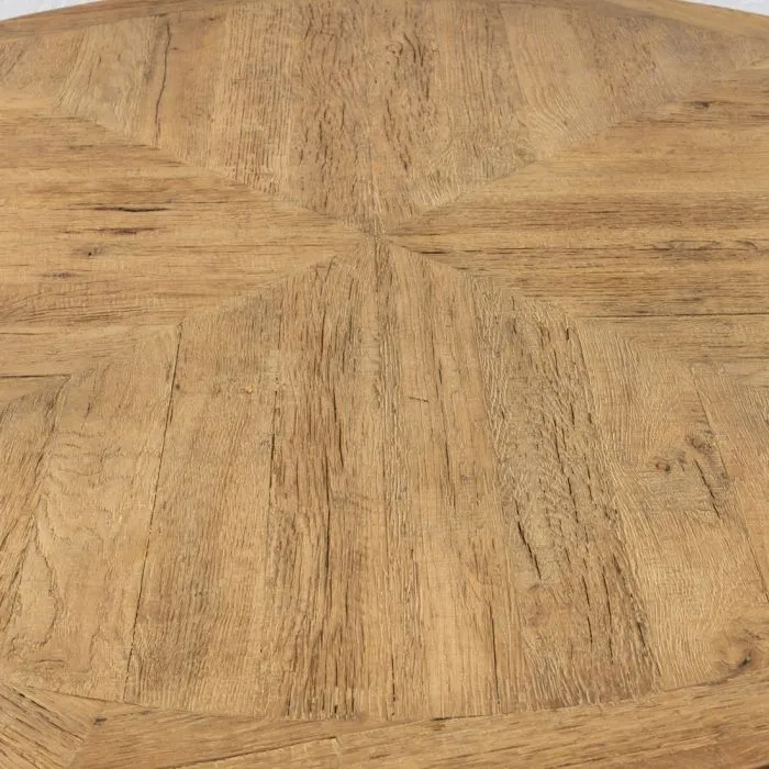 Der Portland Esstisch ist ein robuster, runder Esstisch. Die Tischplatte besteht aus aufgearbeiteter, eingelegter Eiche in einer ungarischen Spitze. Das Holz ist in Textur und Farbtönen sehr unterschiedlich. Der gekreuzte Sockel dieses Esstisches ist ebenfalls aus massiver Eiche gefertigt. Der Esstisch ist auch in einer rechteckigen Version erhältlich.