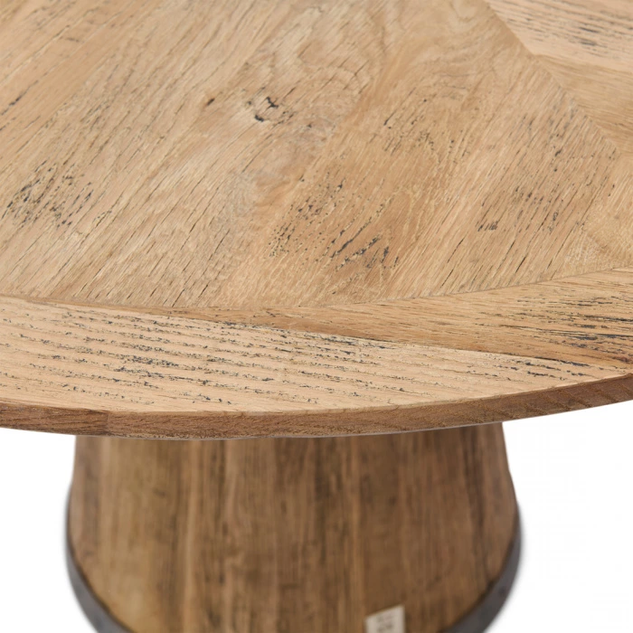 Der Siroko Beach Esstisch ist die perfekte Kombination aus industriellem Stil und natürlicher Wärme. Die Kombination aus recycelter Eiche und dem Eisenring um das Bein macht diesen Tisch zu einem Statement in deinem Esszimmer. Mit einem Durchmesser von 130 cm und einer Höhe von 78 cm bringt dieser Tisch Charakter und Gemütlichkeit in deine Einrichtung, ideal für lange, stimmungsvolle Mahlzeiten.