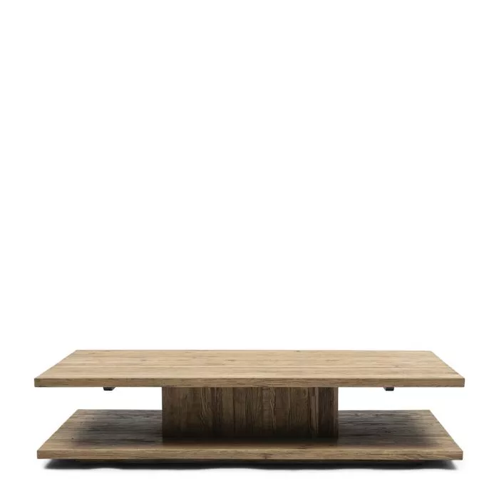 Der Couchtisch Vermont bringt eine rustikale Atmosphäre in Ihr Interieur. Mit seinen großzügigen Maßen von 160x80x35 cm ist dieser Tisch in einem geräumigen Wohnzimmer absolut unverzichtbar. Er ist aus aufgearbeiteter Eiche gefertigt und mit einem zentralen Säulenfuß ausgestattet. Das verleiht ihm eine sehr geräumige und moderne Wirkung. Die verwitterte Optik verleiht ihm Charakter. Ein Couchtisch, an dem Sie jahrelang Freude haben werden!